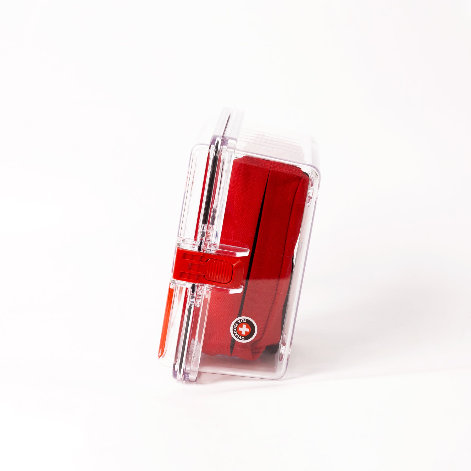 Includes essential items such as latex gloves, trauma bandages, s-rolled gauze, markers, scissors, a windlass tourniquet, and emergency instructions, facilitating an efficient response to bleeding emergencies.