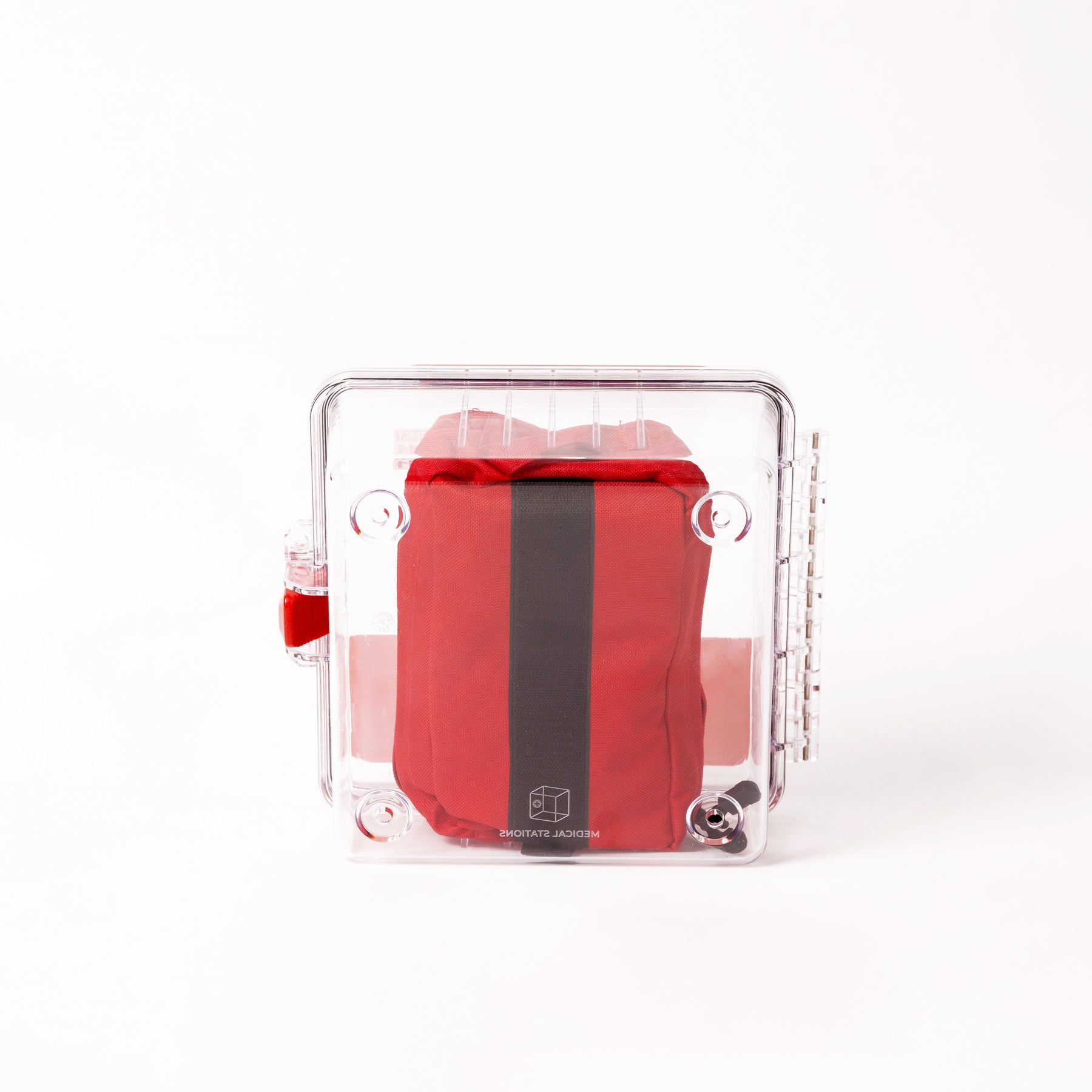 A highly visible wall mount cabinet ensures quick identification during bleeding emergencies, allowing for swift access to necessary supplies.