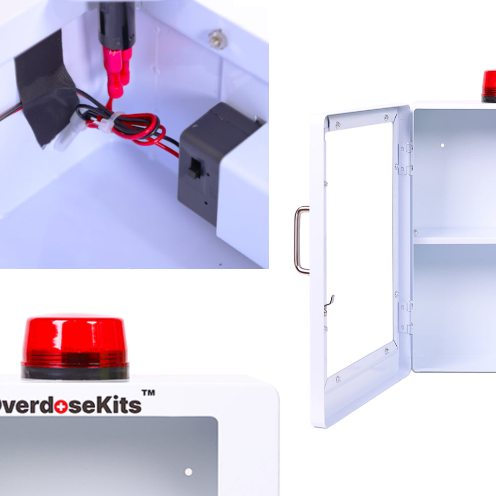 Includes 2 shelves, each capable of holding 3-4 Naloxone boxes or medical supplies like a first aid or bleeding control kit.