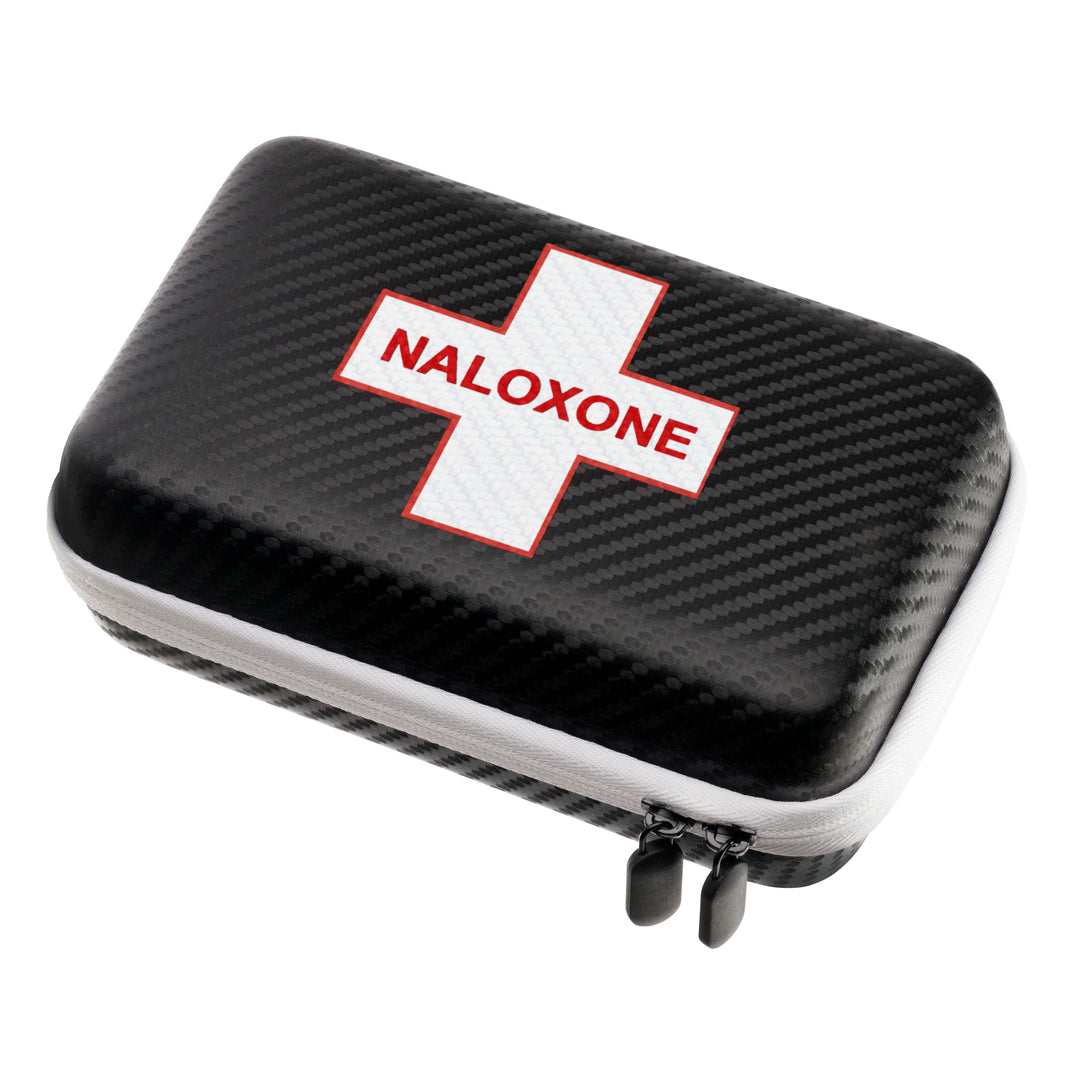 The case has a hardened shell that is lightweight, easy to store and clearly labeled as Naloxone.