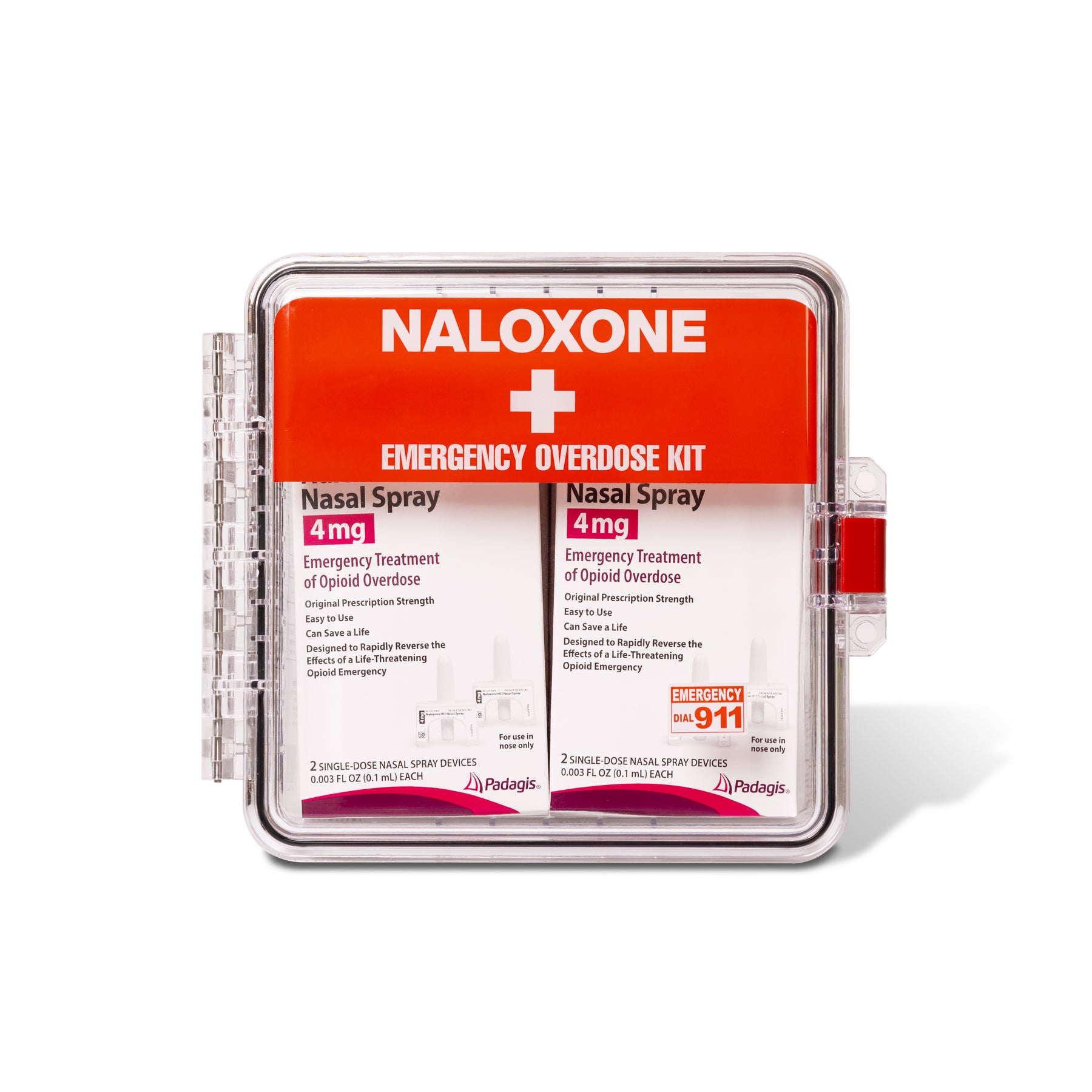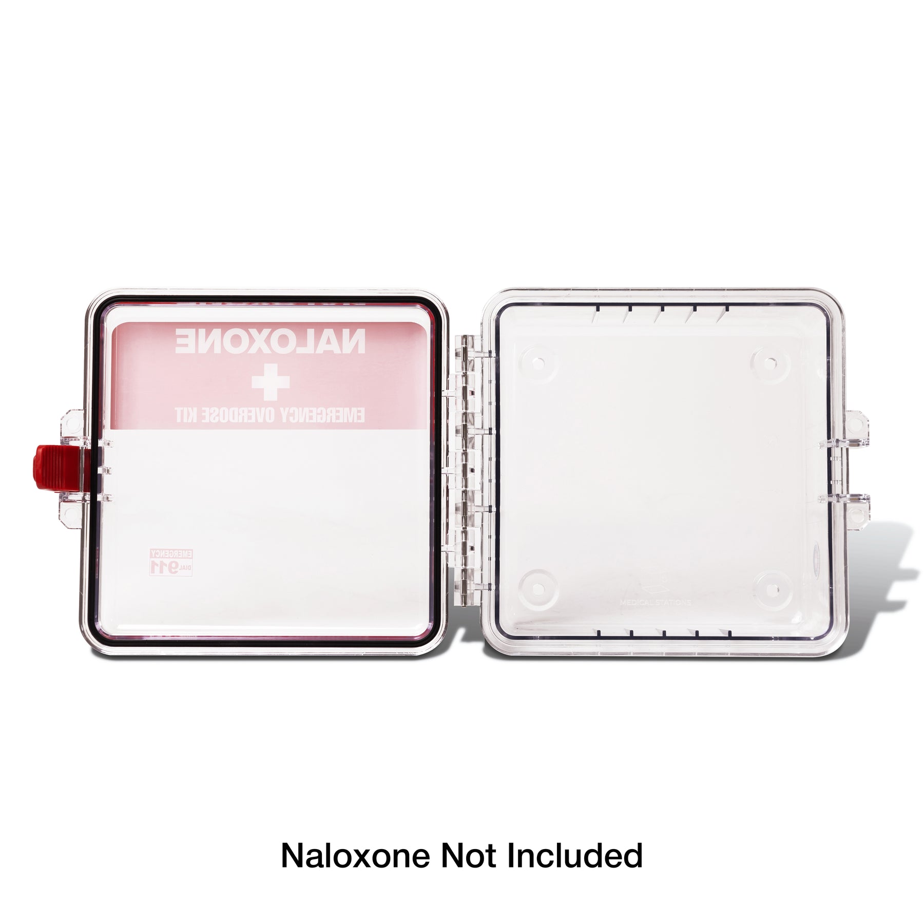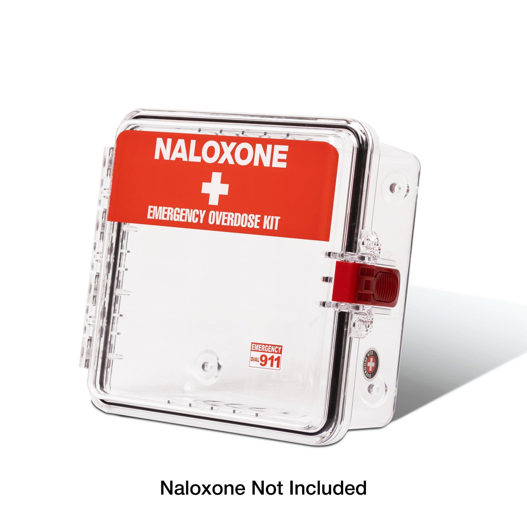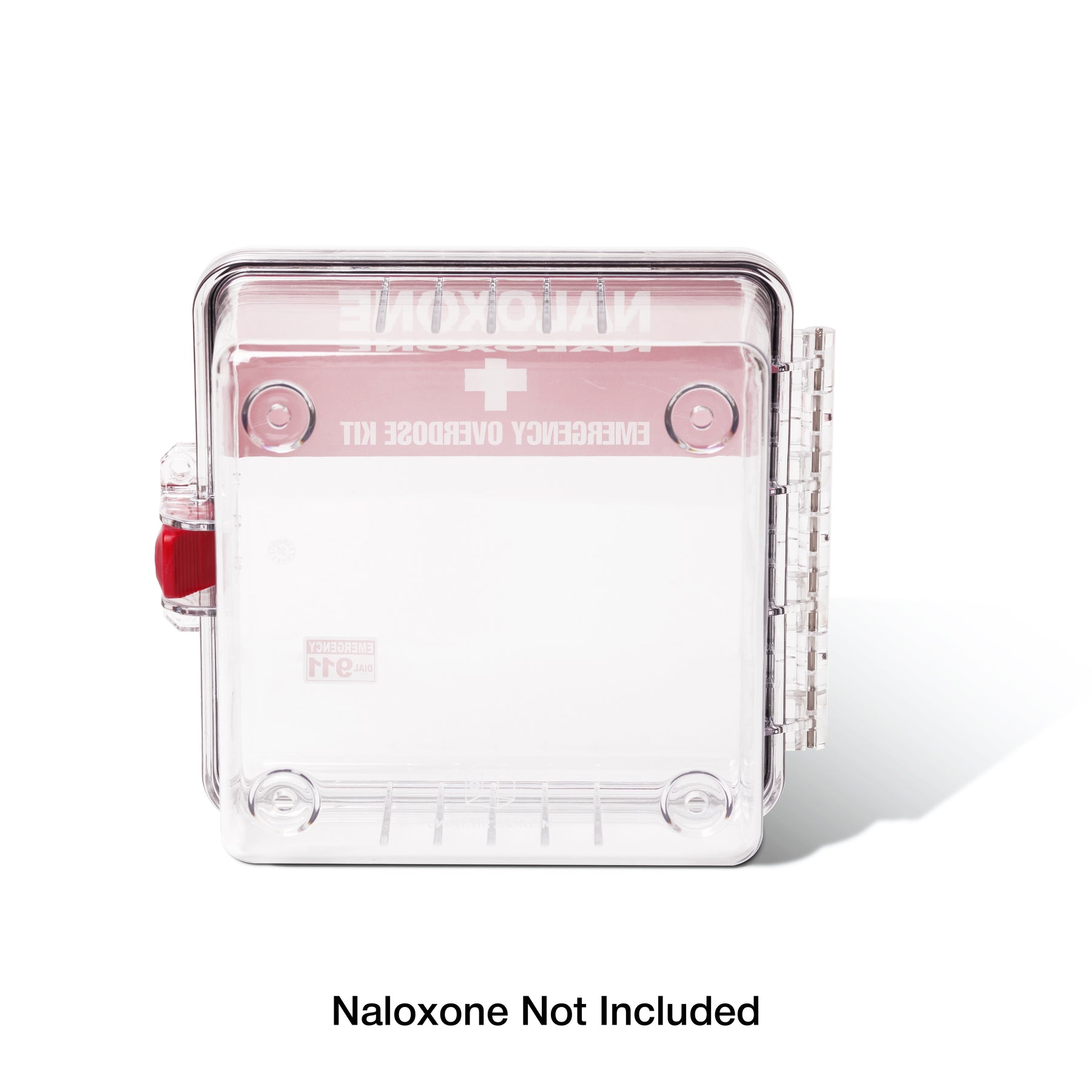 Clear, transparent body with bold “Naloxone” and “Emergency Overdose Kits” labeling for quick, unmistakable identification.