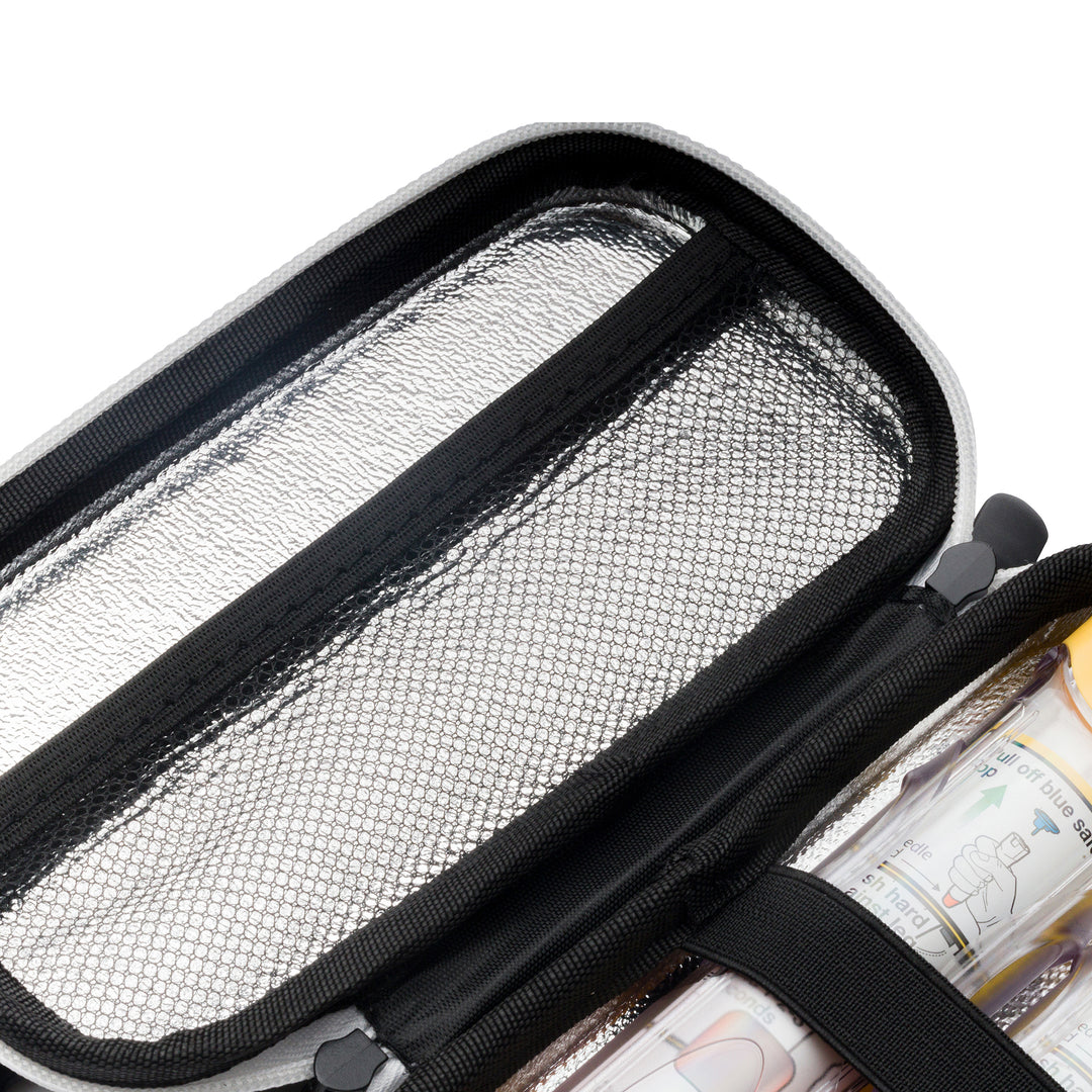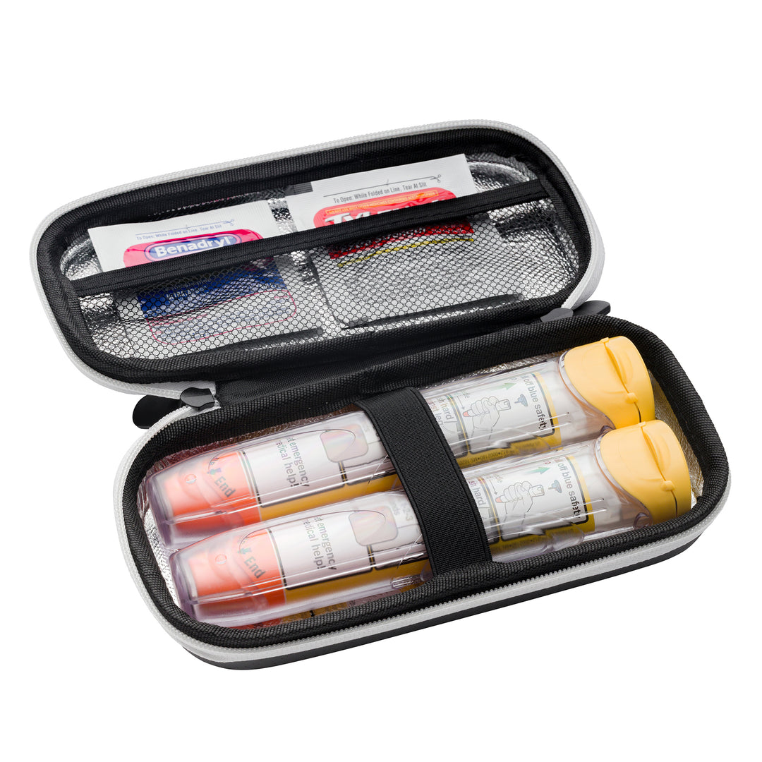 Featuring an insulated silver inner lining, the case maintains the optimal temperature for EpiPen medication. Its hardened shell offers additional protection and is water-resistant.