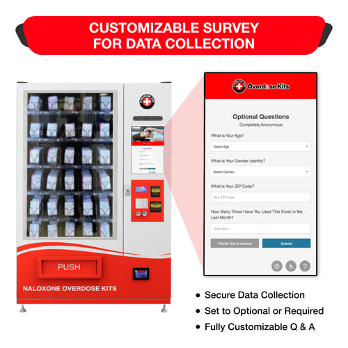 Custom anonymous intake survey available that collects age, zip code, race, gender, and more. Data saves to CSV for easy Excel export and access via cloud or USB. It's fully customizable with options to stay anonymous.